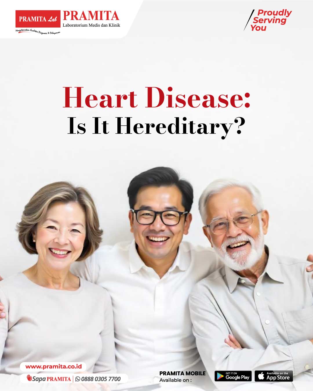 Sat, 14 Jun 2025Dear Sahabat PRAMITA, Heart disease remains the leading cause of death worldwide, including in Indonesia. In addition to lifestyle, genetics also plays a significant role. Is it true that heart disease can be inherited? Yes, it can. A person with a family history of heart disease has a higher risk of developing similar conditions. This is due to genetic mutations passed down from one or both parents. These inherited risks are often exacerbated by poor lifestyle and environment, such as hi...