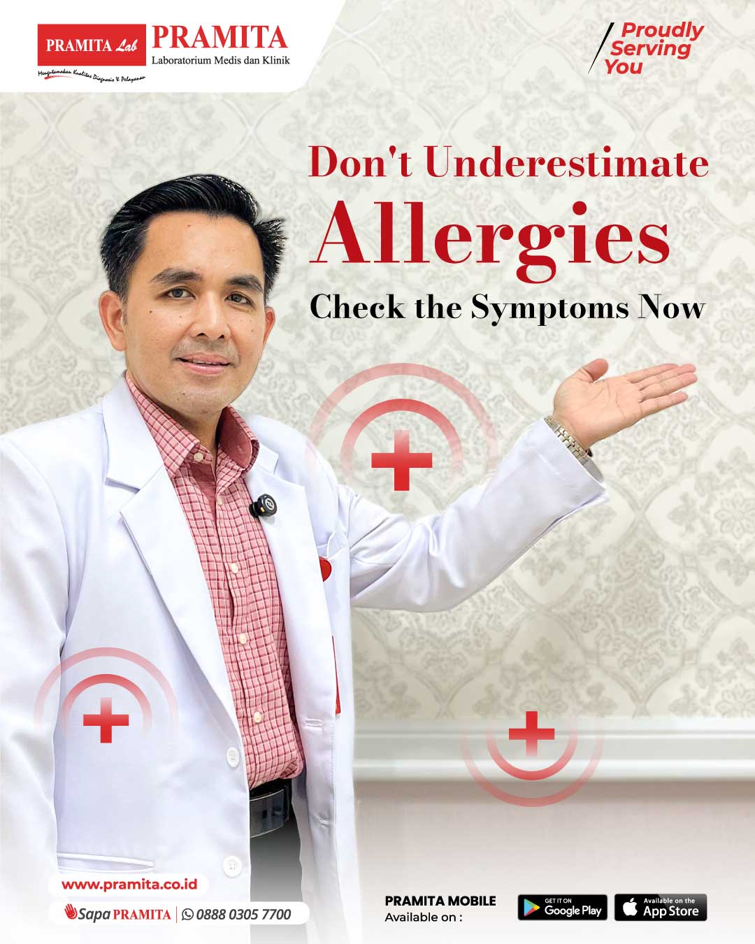 Wed, 1 Oct 2025Allergies can affect anyone, anytime, and may be triggered by unexpected things—from food, dust, to animal fur. Symptoms can range from mild such as sneezing or skin rashes, to severe like shortness of breath or even anaphylactic shock. By identifying allergy triggers through blood tests or skin tests, Sahabat PRAMITA can reduce risks and maintain a better quality of life. Don’t ignore the signs—early detection can make all the difference!