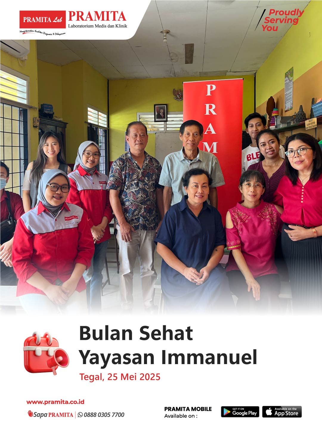 Pada tanggal 25 Mei 2025, PRAMITA Cabang Tegal turut berkontribusi dalam kegiatan Bulan Sehat yang diselenggarakan oleh Yayasan Immanuel di Gereja GPPS Immanuel Slawi. Kegiatan dengan tujuan untuk mengevaluasi kondisi kesehatan jemaat dan mendorong terciptanya pola hidup sehat.