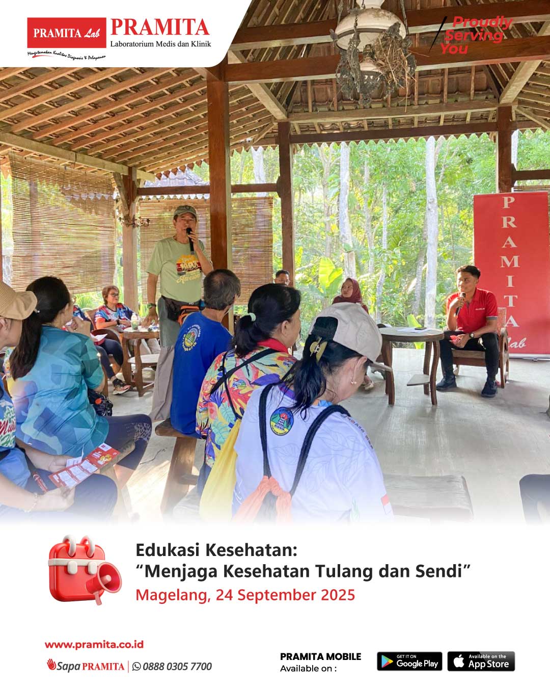 Fri, 3 Oct 2025Pada tanggal 26 September 2025, PRAMITA Cabang Magelang bersama Komunitas Muntilan Hash menggelar edukasi kesehatan bertema “Menjaga Kesehatan Tulang dan Sendi”, bertempat di Balkondes Kenalan dengan narasumber dr. Cahya Rahma Miftah – Dokter Layanan Medis PRAMITA Magelang. Hadir 70 anggota komunitas yang antusias mengikuti pemaparan mengenai cara menjaga tulang dan sendi tetap sehat di usia produktif maupun lanjut usia. Selain sesi edukasi, juga diperkenalkan beberapa paket Medical Check Up ser...