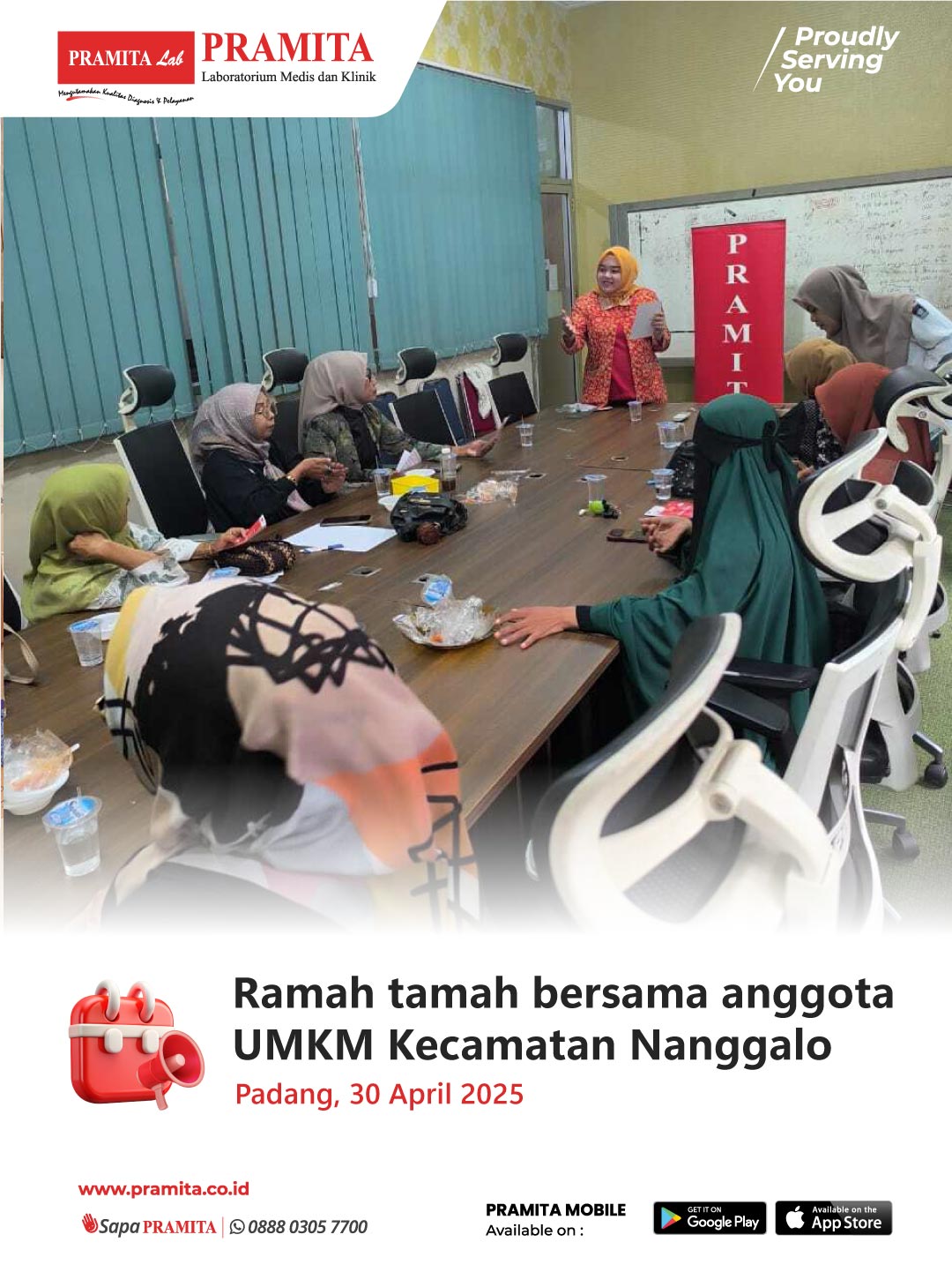 Sat, 10 May 2025Pada tanggal 30 April 2025, PRAMITA Cabang Padang turut berpartisipasi dalam kegiatan ramah tamah bersama anggota UMKM Kecamatan Nanggalo. Acara yang berlangsung di Kantor Camat Nanggalo ini dihadiri oleh anggota aktif UMKM dan menjadi forum santai yang bermanfaat bagi seluruh peserta. Dalam kegiatan ini, PRAMITA berbagi informasi seputar pentingnya medical check-up dan menjaga kesehatan pasca Lebaran, serta membuka ruang diskusi dan mendengarkan berbagai keluhan kesehatan dari peserta yang h...