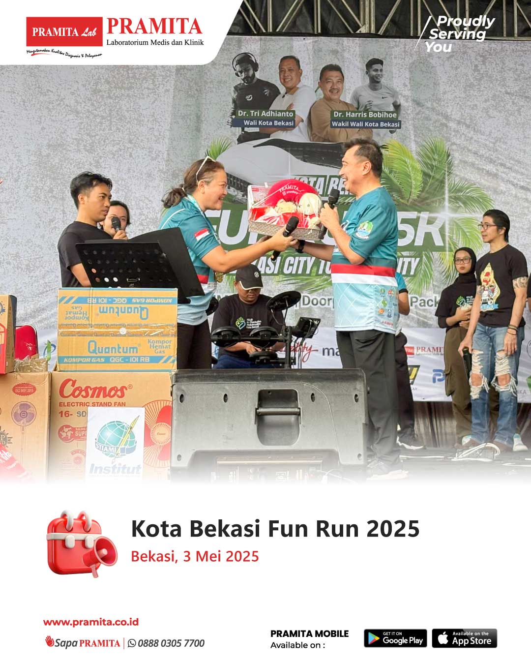 Sat, 10 May 2025PRAMITA Cabang Bekasi bersama Oxylone Fitness turut berpartisipasi aktif dalam Kota Bekasi Fun Run 2025 yang diselenggarakan oleh Dinas Pemuda dan Olahraga Kota Bekasi. Fun Run 5K Bekasi 2025 diikuti oleh sekitar 2.000 peserta dan dihadiri oleh Wali Kota Bekasi, Dr. Tri Adhianto, serta Wakil Wali Kota, Dr. Hartis Bobihoe. Pada kesempatan ini, PRAMITA Bekasi membuka booth layanan kesehatan dengan menyediakan pemeriksaan tekanan darah, tes glukosa sewaktu, pengukuran body composition, serta inf...