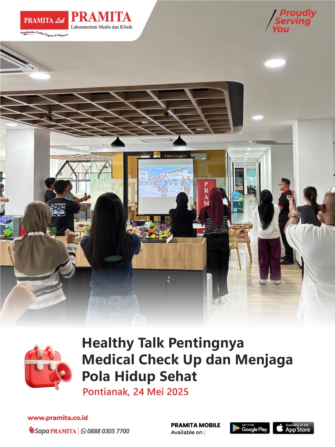 Thu, 5 Jun 2025Healthy Talk Pentingnya Medical Check Up & Menjaga Pola Hidup Sehat Dalam upaya meningkatkan kesadaran masyarakat terhadap pentingnya kesehatan, PRAMITA Lab Pontianak menyelenggarakan acara Healthy Talk "Pentingnya Medical Check Up dan Menjaga Pola Hidup Sehat" dengan narasumber dr. Stephanie Natasha, bagi karyawan Astra Honda Ayani Pontianak dan masyarakat sekitarnya. Materi edukasi membahas berbagai aspek penting, mulai dari pola makan seimbang, peran nutrisi, hingga pentingnya pemeriksa...
