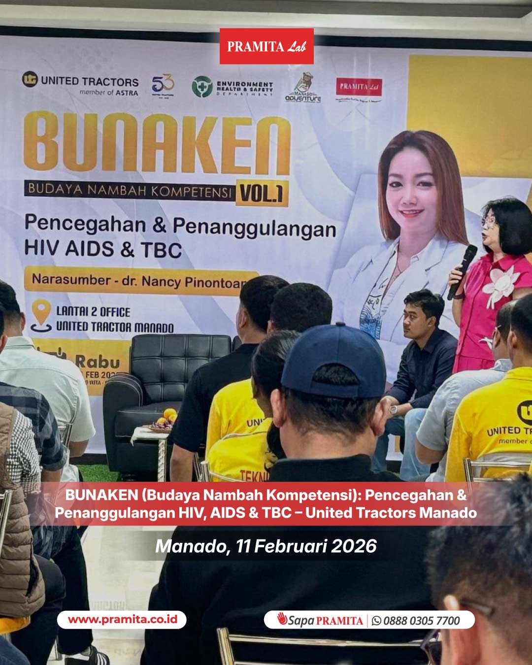 Sat, 21 Feb 2026Tanggal 11 Februari 2026 — PRAMITA Manado memberikan edukasi kesehatan dalam kegiatan BUNAKEN (Budaya Nambah Kompetensi) yang diselenggarakan oleh United Tractors Manado, bertempat di kantor United Tractors Manado. Kegiatan ini diikuti sekitar 30 karyawan dan menjadi ruang pembelajaran untuk meningkatkan wawasan kesehatan di lingkungan kerja. Pada kesempatan tersebut, PRAMITA Manado menghadirkan edukasi kesehatan bertema “Pencegahan dan Penanggulangan HIV/AIDS serta TBC” yang disampaikan oleh...
