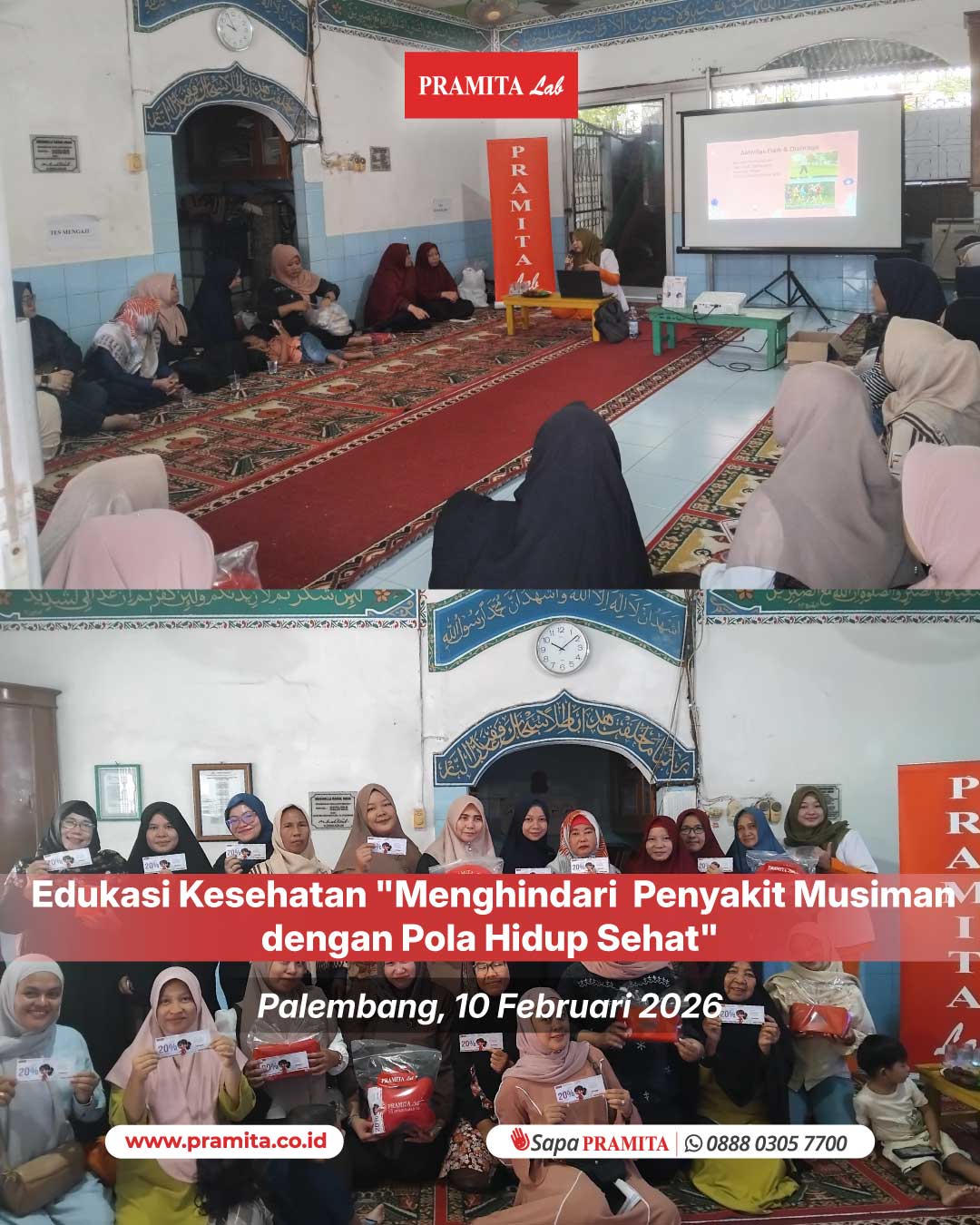 Sat, 21 Feb 2026Palembang, Selasa, 10 Februari 2026 — PRAMITA Palembang hadir dalam Pertemuan Rutin Bulanan Wali Murid RA Fatimah yang berlangsung di Mushola Darul Iman, Sekolah RA Fatimah Palembang. Kegiatan yang dihadiri orang tua/wali murid ini diisi dengan edukasi kesehatan bertema “Menghindari Penyakit Musiman dengan Pola Hidup Sehat.” Selain edukasi, PRAMITA juga memperkenalkan ragam layanan Laboratorium Medis dan Klinik PRAMITA serta membagikan voucher pemeriksaan kepada peserta. Kegiatan ini menjadi...