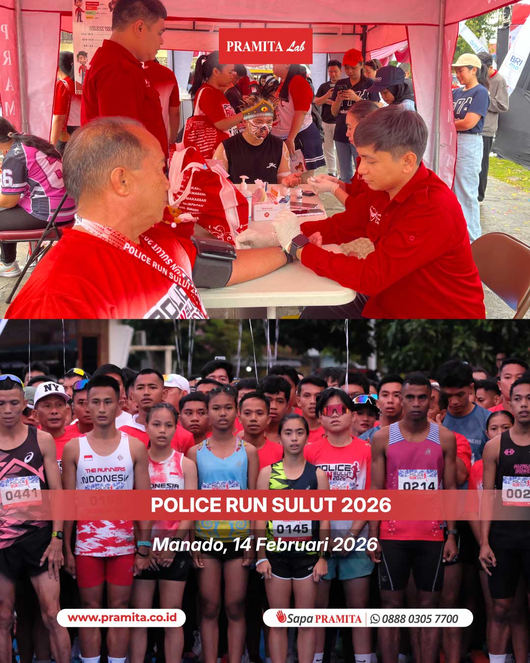 Sat, 21 Feb 2026Manado, 14 Februari 2026 — PRAMITA Cabang Manado turut berpartisipasi dalam ajang POLICE RUN SULUT 2026 yang digelar di Polda Sulawesi Utara. POLICE RUN SULUT 2026 diikuti lebih dari 1.000 orang dan menjadi simbol sinergi antara kepolisian dan masyarakat dalam mendorong gaya hidup sehat serta menjunjung sportivitas di Bumi Nyiur Melambai. Dalam kesempatan tersebut, PRAMITA Manado menghadirkan layanan mini MCU, membuka booth informasi pemeriksaan kesehatan, serta menyediakan door prize bagi pa...