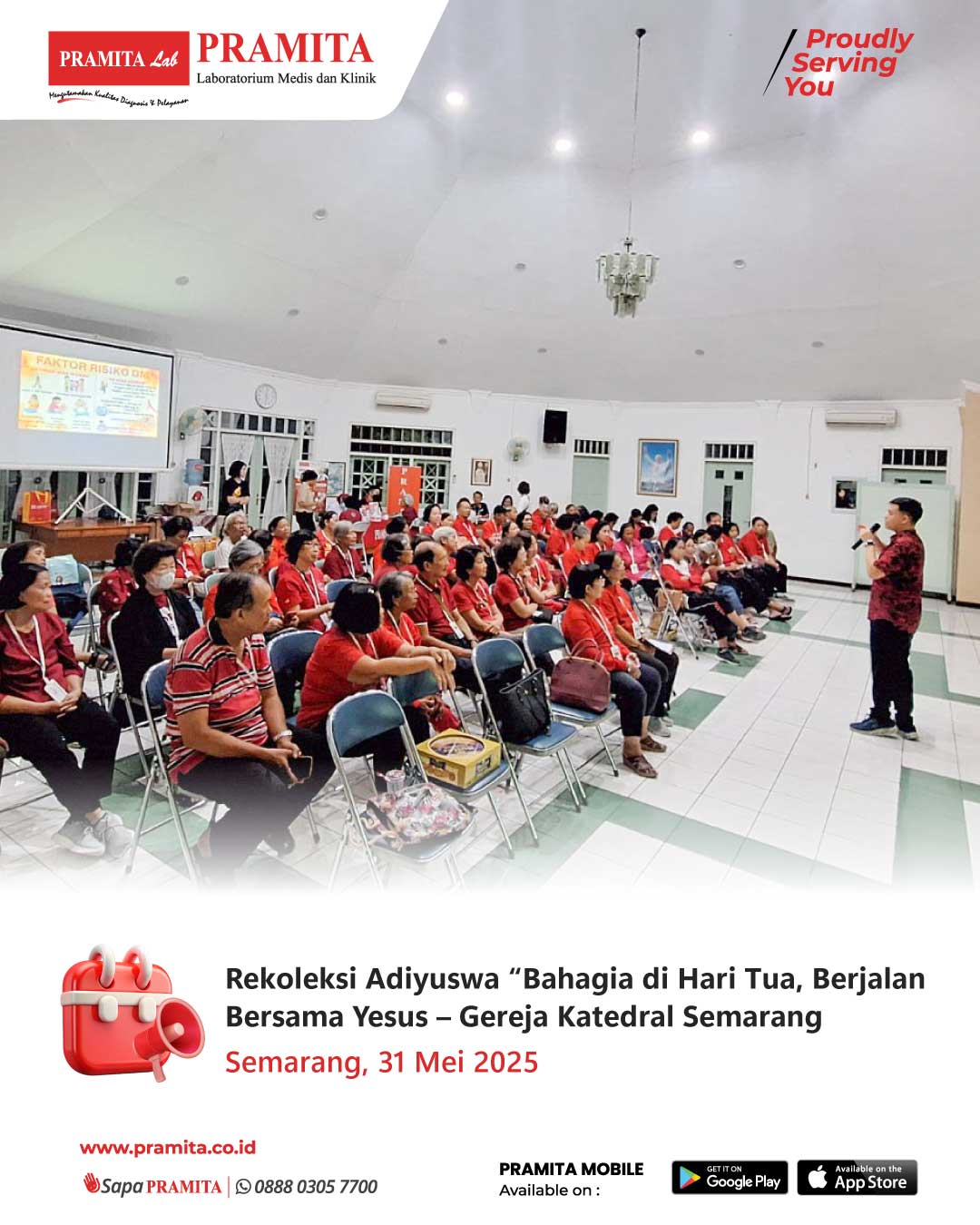 Sat, 7 Jun 2025Tanggal 31 Mei 2025 — PRAMITA Cabang Semarang berkolaborasi bersama Tropicana Slim berpartisipasi dalam kegiatan Rekoleksi Adiyuswa bertajuk: Bahagia di Hari Tua, Berjalan Bersama Yesus yang diselenggarakan oleh Gereja Katedral Semarang.