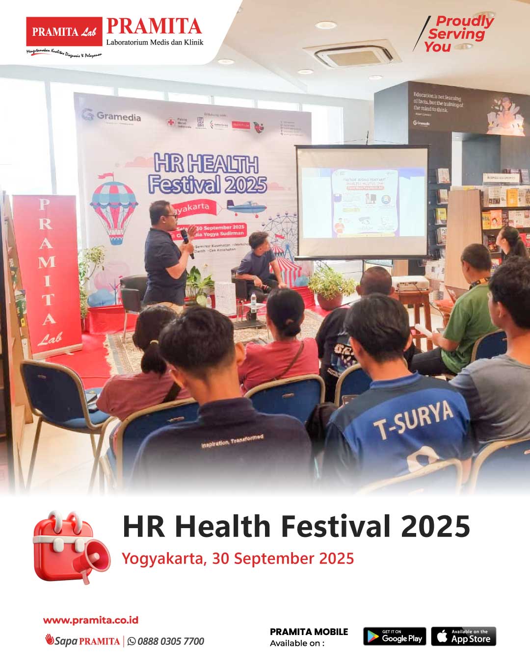 Fri, 10 Oct 2025Pada tanggal 30 September 2025, PRAMITA Cabang Yogyakarta berpartisipasi dalam acara HR Health Festival 2025 yang diselenggarakan oleh Perkumpulan Human Resource Gramedia di Gedung Gramedia Sudirman, Yogyakarta. Mengusung tema “Menjaga Kesehatan dari Penyakit Tidak Menular” dengan narasumber dr. Yudhi Kristanto. Hadir hampir 100 orang karyawan yang mengikuti dengan antusias edukasi pencegahan penyakit tidak menular seperti diabetes, hipertensi, dan kolesterol tinggi. Melalui penyuluhan ini, PRAM...