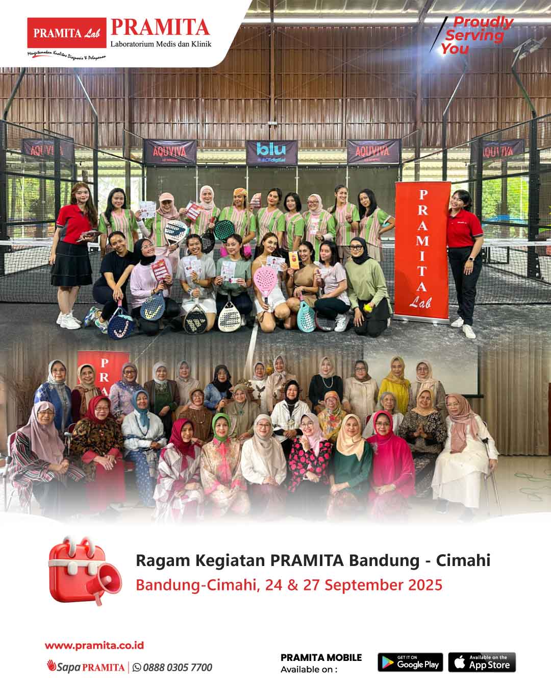 Fri, 3 Oct 2025PRAMITA Bandung-Cimahi kembali mewujudkan sinergi dengan mendukung kegiatan yang diadakan oleh 2 (dua) komunitas masyarakat Kota Bandung-Cimahi. Pada tanggal 24 September 2025, tim PRAMITA Bandung-Cimahi hadir sebagai tim penyelenggara kesehatan di tengah pertandingan persahabatan Komunitas Padel "Evedel Queen" di La Cancha Padel. Selanjutnya, pada tanggal 27 September 2025, PRAMITA Bandung-Cimahi mendapat kesempatan mengisi seminar kesehatan dalam Rapat Anggota IIDI Kota Bandung di Bumi Samami...