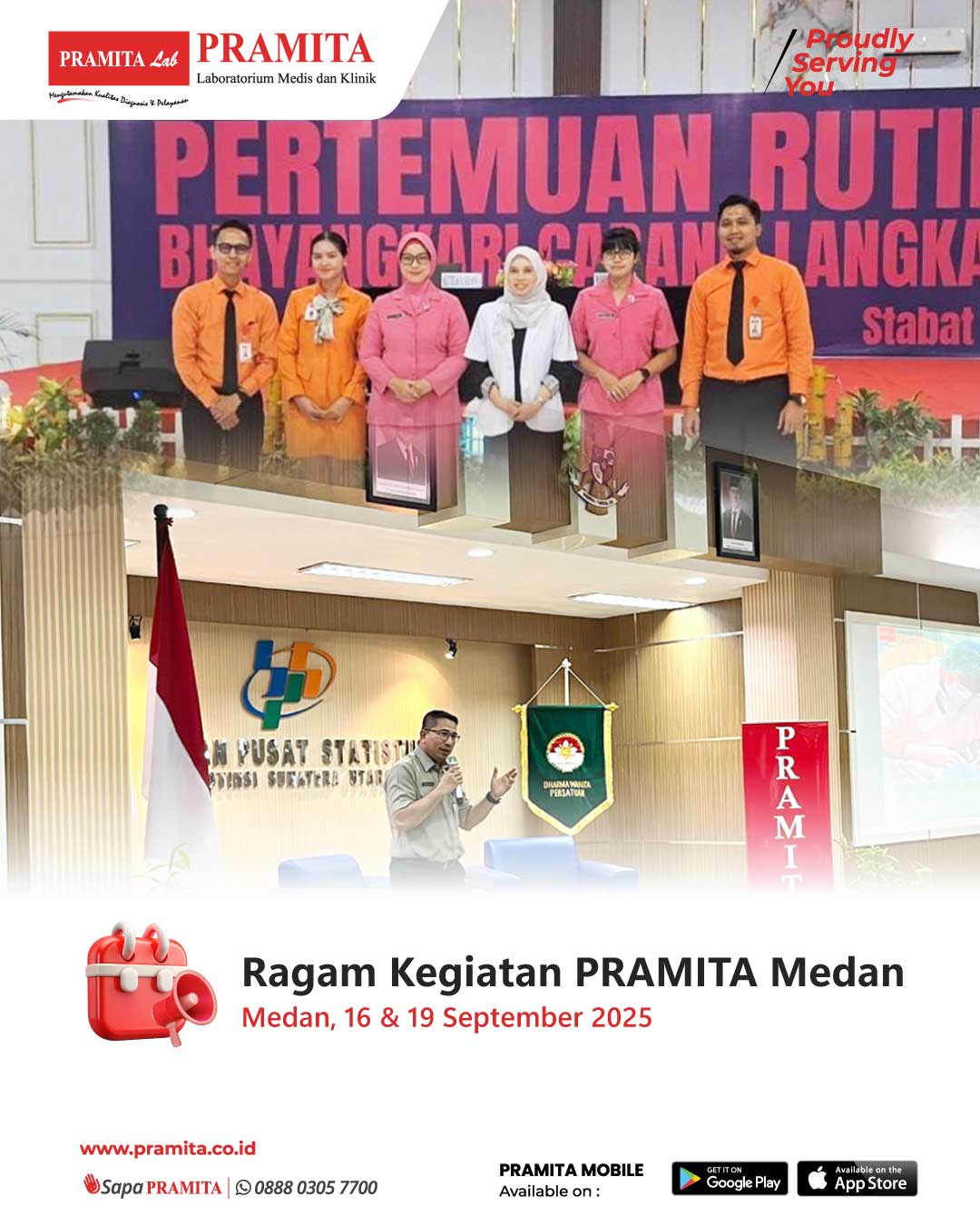 Sat, 27 Sep 2025PRAMITA Cabang Medan terus aktif mendukung program promotif dan preventif kesehatan melalui kolaborasi bersama berbagai komunitas dan instansi. Pada 16 September 2025, PRAMITA berpartisipasi dalam Pertemuan Rutin Tahunan Bhayangkari di Aula Polres Langkat, Sumatera Utara, yang dihadiri sekitar 200 peserta termasuk Ibu Kapolres dan Ibu Kapolsek Langkat. Dalam kegiatan ini, PRAMITA Medan dipercaya memberikan edukasi kesehatan bertema “Kenali & Cegah Kanker Serviks” dengan narasumber dr. Mawarni...