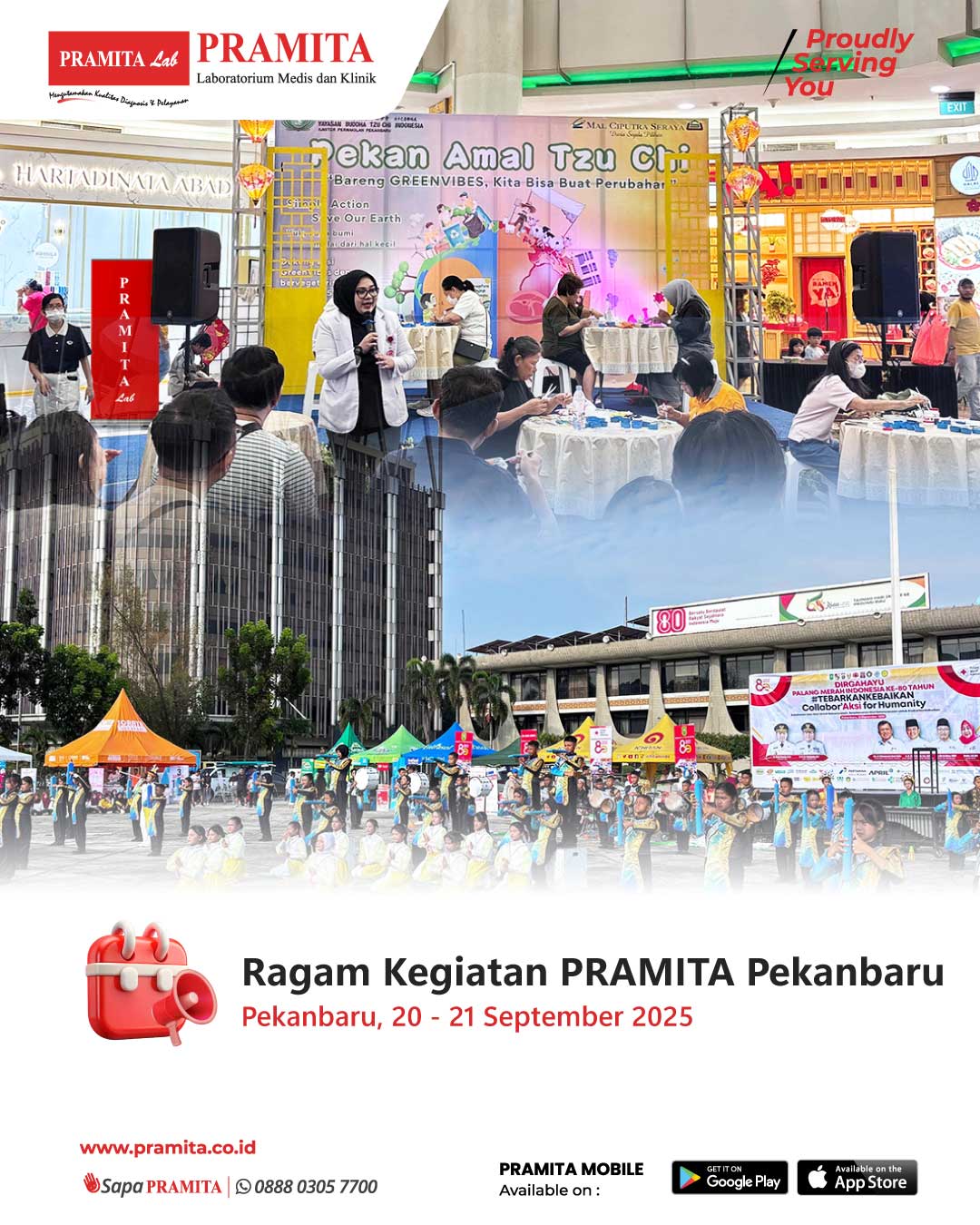 Sat, 27 Sep 2025Hingga pertengahan September 2025, PRAMITA Cabang Pekanbaru terus menunjukkan eksistensinya dalam mendukung berbagai kegiatan komunitas melalui edukasi kesehatan. - 20 September 2025 – PRAMITA Pekanbaru bersinergi dengan Komunitas Tzu Chi dalam Pekan Amal Tzu Chi: “Green Vibes, Simple Action, Save Our Earth” di Mall Ciputra Seraya Pekanbaru. Pada kesempatan ini, dr. Melynda Elka Putri membawakan edukasi tentang Deteksi Dini Kanker dan pemeriksaan SPOT-Mas di hadapan sekitar 100 peserta dari m...