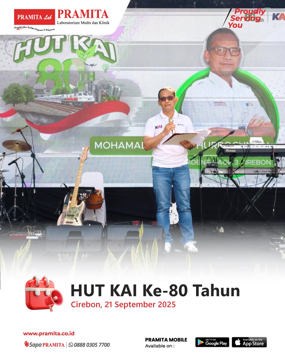 Sat, 27 Sep 2025Tanggal 21 September 2025, PRAMITA Cirebon turut memeriahkan HUT ke-80 PT. KAI yang digagas oleh PT. KAI DAOP 3 Cirebon. Berbagai kegiatan diselenggarakan, di antaranya jalan sehat, cek kesehatan gratis, serta acara hiburan lainnya. Hadir dalam perayaan ini Bapak Effendi Edo, S.A.P., M.Si. (Wali Kota Cirebon), Bapak M. Arie Fathurrochman (Vice President PT. KAI DAOP 3 Cirebon), beserta staf dan keluarga besar PT. KAI DAOP 3 Cirebon. Sebagai mitra kesehatan terpercaya, PRAMITA Cirebon membu...