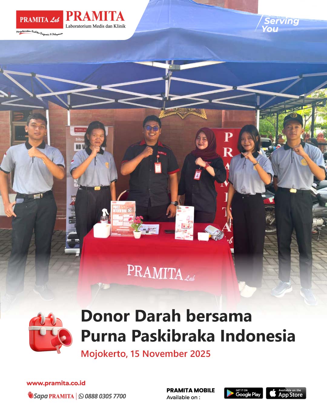 Sat, 22 Nov 2025Tanggal 15 November 2025, PRAMITA Cabang Mojokerto turut berpartisipasi dalam kegiatan Donor Darah Purna Paskibraka Indonesia Kota Mojokerto, yang diadakan di Kantor PMI Kota Mojokerto. Warga Mojokerto menyambut dengan antusias dalam aksi sosial kemanusiaan tersebut. Bentuk dukungan terhadap kegiatan ini, PRAMITA Mojokerto membuka booth pelayanan kesehatan, menyediakan Body Composition Analysis, pemeriksaan skrining hipertensi, serta edukasi mengenai berbagai layanan unggulan seperti Medical...