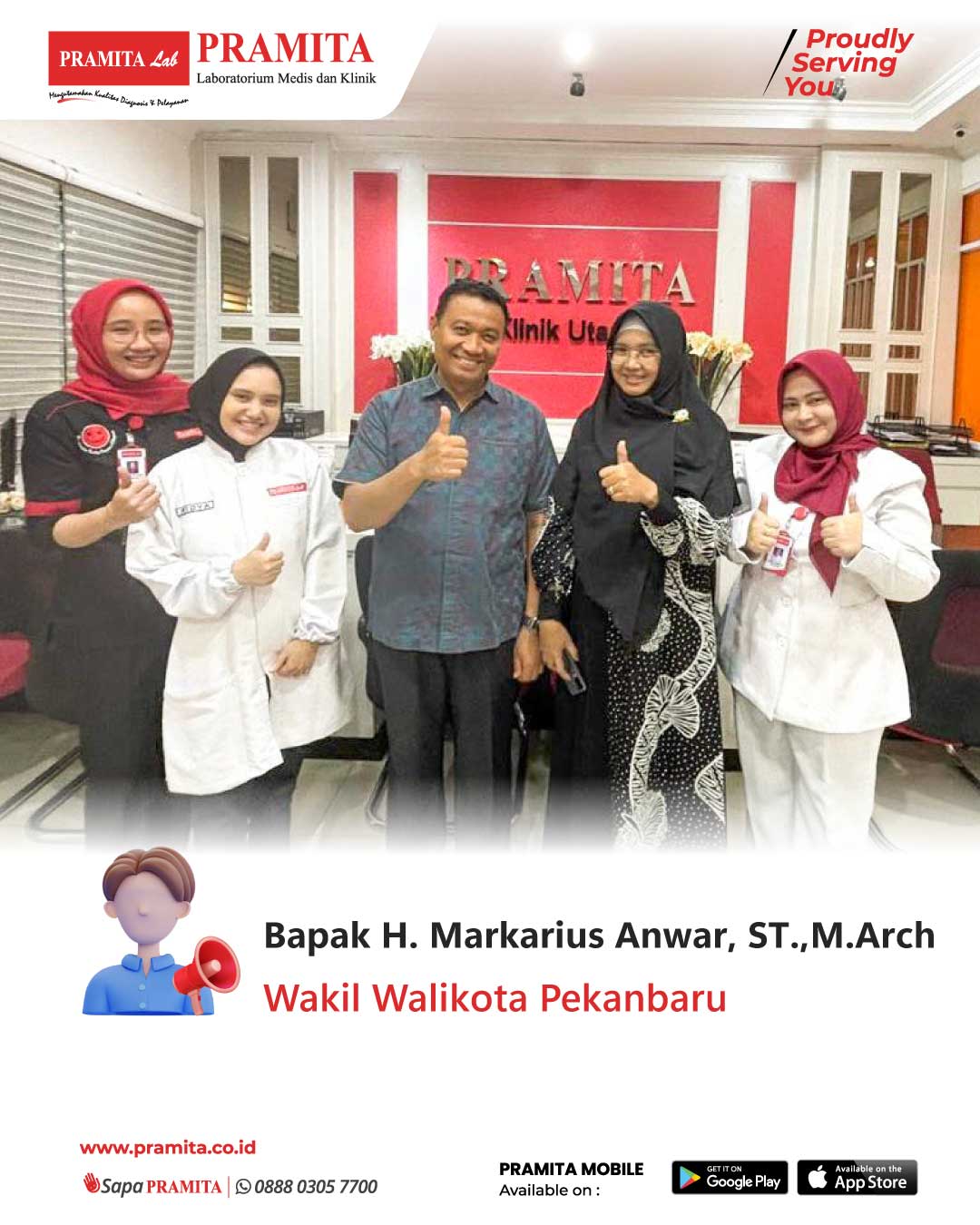 Mon, 24 Nov 2025Terimakasih kepada Bapak H. Markarius Anwar, ST.,M.Arch - (Wakil Walikota Pekanbaru) atas kepercayaannya telah memilih Lab. Medis dan Klinik PRAMITA Pekanbaru dalam melakukan pemeriksaan medical check up. Salam sehat dan sukses selalu