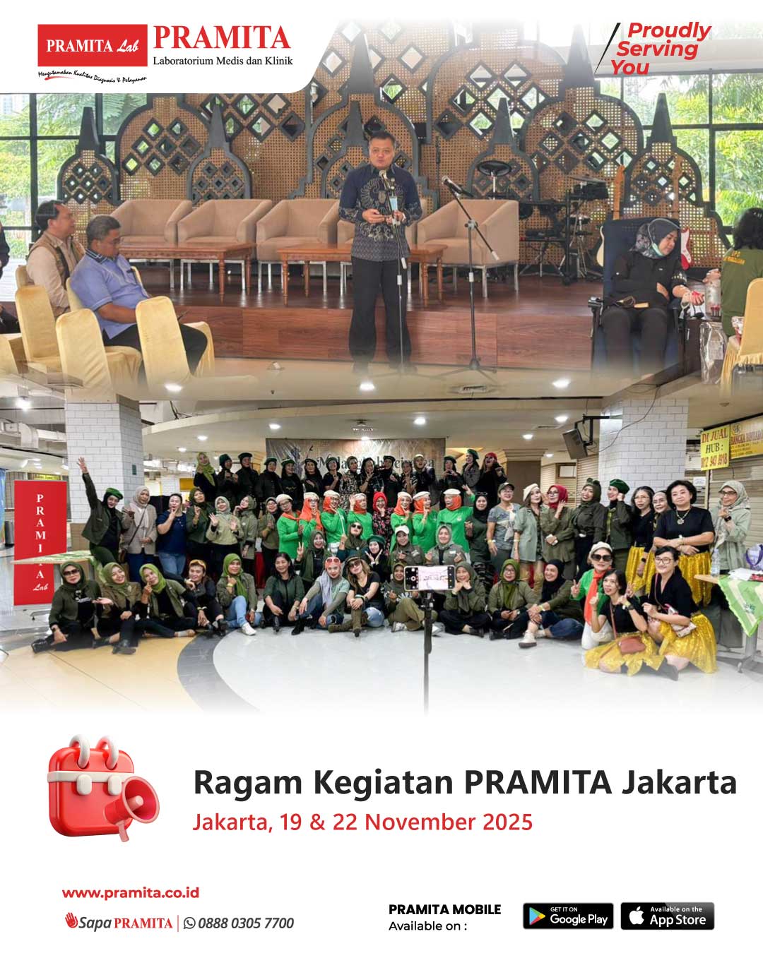 Sat, 29 Nov 2025Mewujudkan komitmen dalam mendukung gaya hidup sehat masyarakat, PRAMITA Cabang Jakarta berpartisipasi dalam dua kegiatan berbeda di akhir bulan November 2025. 1. Kegiatan pertama adalah Donor Darah “Setetes Darah untuk Negeri, Bakti KORPRI Tiada Henti”, hasil kolaborasi bersama KORPRI dan PMI dalam rangka HUT ke-54 KORPRI. Kegiatan diikuti sekitar 300 peserta, acara ini menjadi ajang kebersamaan dan semangat solidaritas bagi para peserta. Pada kegiatan tersebut PRAMITA cabang Jakarta membuka bo...