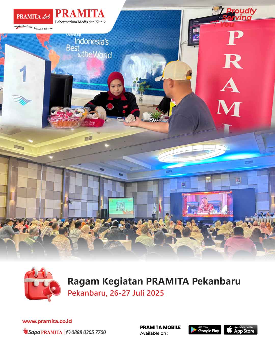 Sat, 2 Aug 2025PRAMITA Cabang Pekanbaru membuktikan komitmennya dalam mendekatkan layanan kesehatan kepada masyarakat dengan berpartisipasi dalam dua kegiatan di penghujung Juli 2025. Tanggal 26–27 Juli 2025, PRAMITA Cabang Pekanbaru turut hadir dalam Sales Office Travel Fair (SOTF) Garuda Indonesia Pekanbaru di area Car Free Day. Pada kesempatan tersebut, pengunjung mendapatkan layanan cek tekanan darah, gula darah sewaktu, serta voucher diskon pemeriksaan. Kehadiran PRAMITA menjadi daya tarik tersendiri dala...