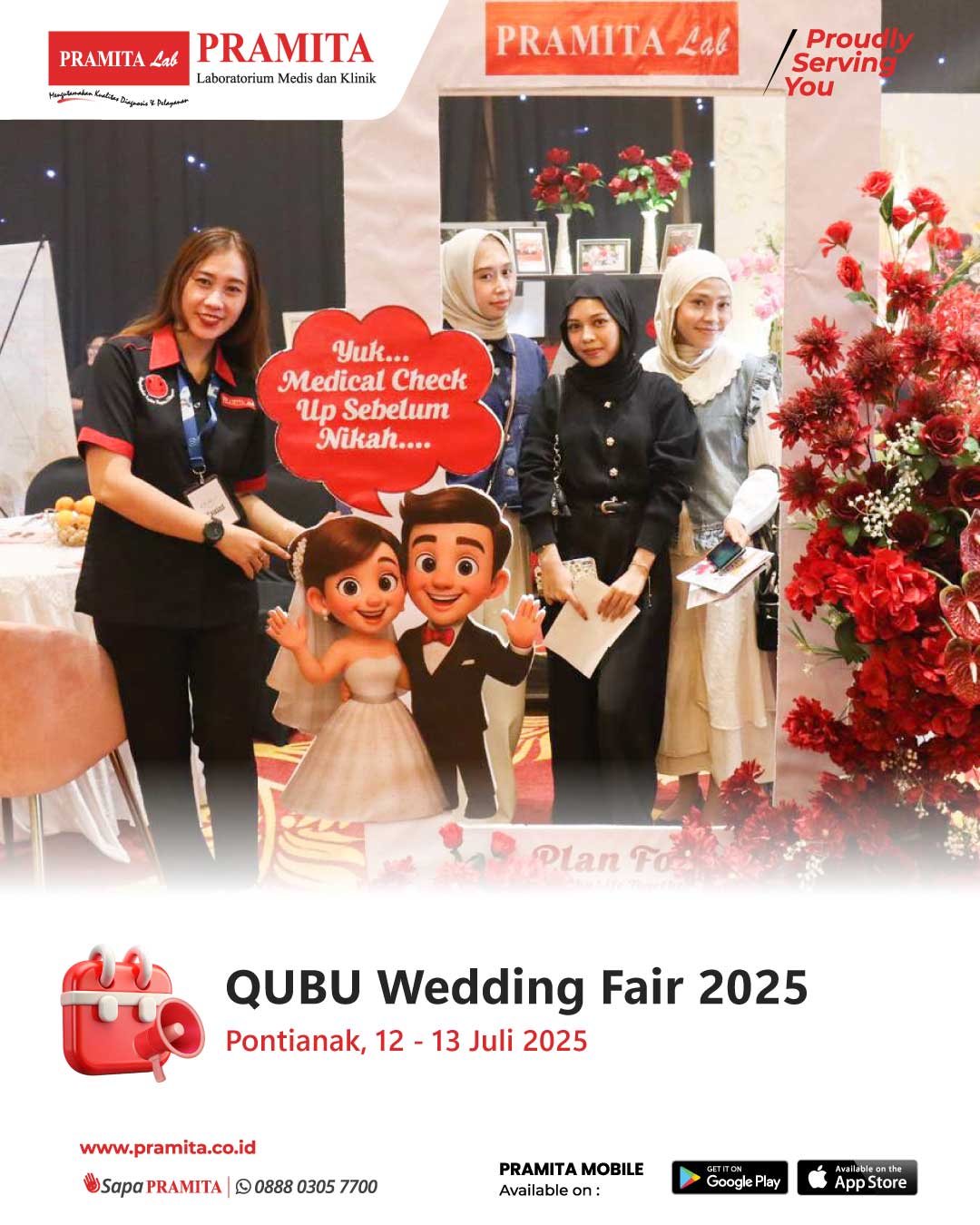 Sat, 26 Jul 2025Pada tanggal 12–13 Juli 2025, PRAMITA Cabang Pontianak turut ambil bagian dalam acara QUBU Wedding Fair 2025 — pameran pernikahan terbesar di Kalimantan Barat yang digelar oleh Qubu Resort, Yours Planner, Dy Wedding House, dan Cemerlang Pentasindo. Acara ini mendapat sambutan meriah dengan kehadiran lebih dari 800 pengunjung dari berbagai kalangan. Sebagai satu-satunya vendor dari sektor kesehatan, PRAMITA Pontianak membuka meja booth layanan konsultasi Premarital Checkup, sekaligus mengisi t...