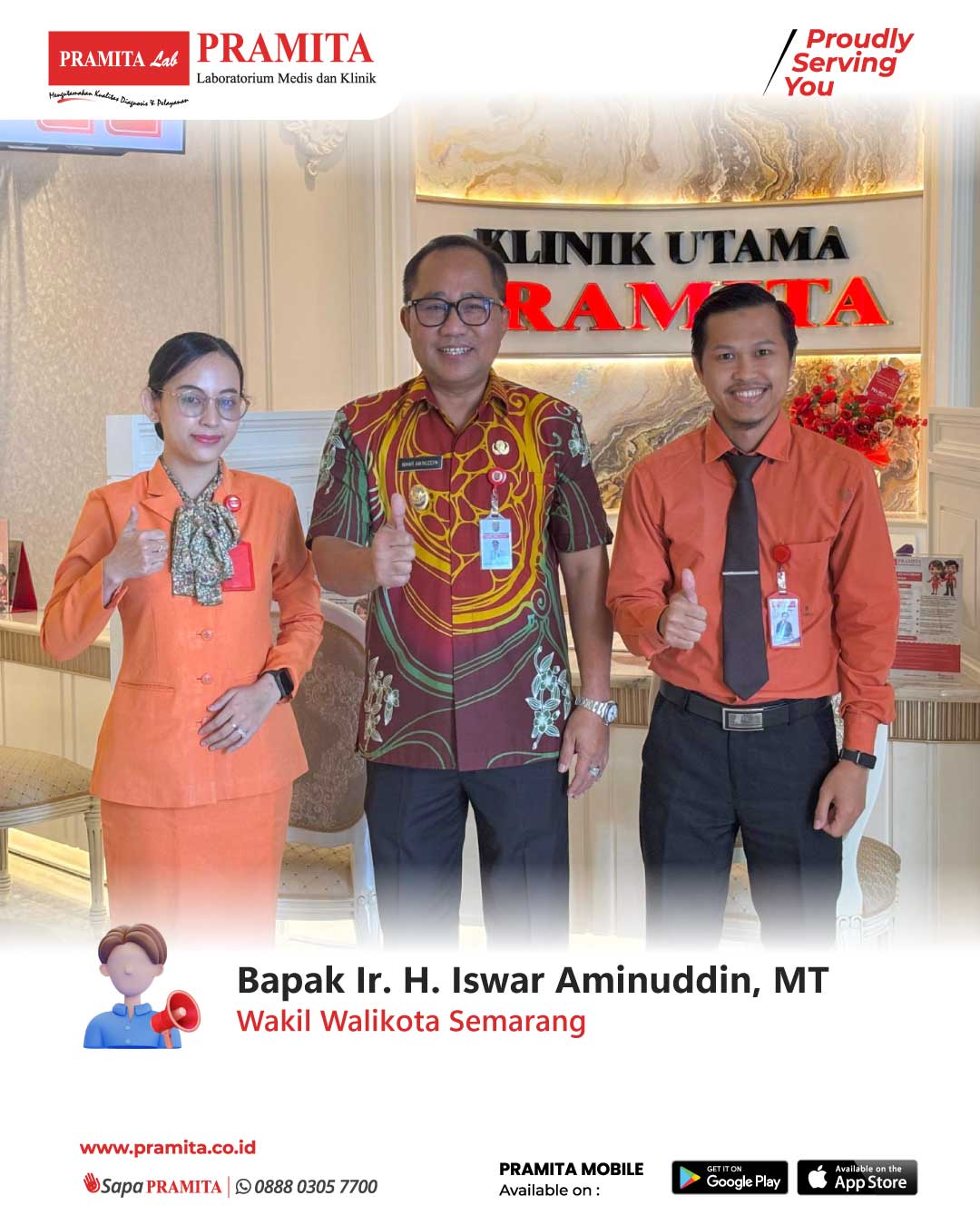Wed, 2 Jul 2025Terimakasih kepada Bapak Ir. H. Iswar Aminuddin, MT (Wakil Walikota Semarang) atas kepercayaan yang diberikan telah melakukan pemeriksaan kesehatan / Medical Check Up di PRAMITA Semarang Cabang Kompol Maksum. Salam sehat dan sukses selalu