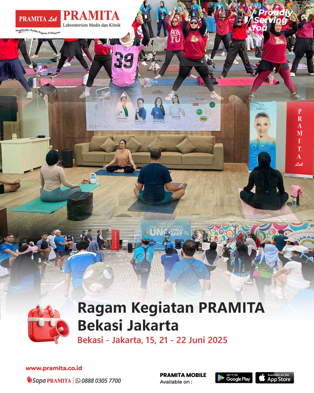 Sat, 28 Jun 2025Mewujudkan komitmen dalam mendukung gaya hidup sehat kepada masyarakat, PRAMITA kembali berpartisipasi aktif dalam berbagai kegiatan publik yang diselenggarakan di Kota Bekasi dan Jakarta pada pertengahan Juni 2025. - Tanggal 15 Juni 2025, PRAMITA Cabang Bekasi turut mensukseskan FORKOT IV Festival Olahraga Masyarakat Kota Bekasi yang diinisiasi oleh KORMI Bekasi. Turut hadir dalam kegiatan tersebut, Bapak Abdul Harris Bobihoe (Wakil Wali Kota Bekasi). Bekerja sama dengan Oxylone Gym, PRAMI...