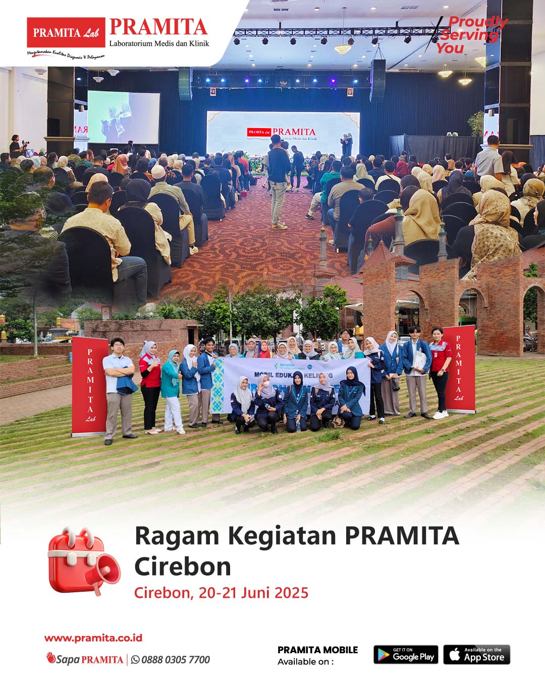Mon, 30 Jun 2025PRAMITA Cabang Cirebon kembali menunjukkan peran aktifnya dalam mendekatkan layanan kesehatan kepada masyarakat dengan berpartisipasi dalam dua kegiatan bertema edukasi dan keluarga pada 20 dan 21 Juni 2025. Pada Jumat, 20 Juni 2025, PRAMITA hadir dalam kegiatan Mobil Edukasi Keliling “Cirebon Sehat Jeh” yang diselenggarakan oleh Poltekkes Kemenkes Tasikmalaya di Alun-Alun Kejaksan, Kota Cirebon. Acara ini diikuti oleh tenaga medis, dosen, mahasiswa, dan masyarakat umum sebagai bagian dari pe...