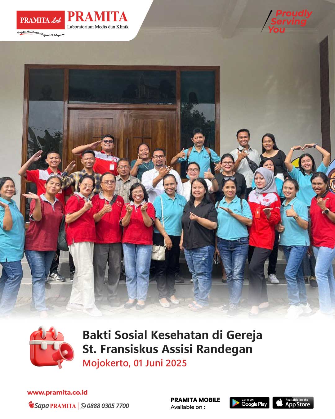 Sat, 14 Jun 2025Pada tanggal 01 Juni 2025 — PRAMITA Cabang Mojokerto menjalin sinergi positif bersama Tim Kesehatan Gereja Katolik Mojokerto dalam kegiatan Bakti Sosial Kesehatan yang berlangsung di Gereja Katolik St. Fransiskus Assisi, Randegan. Acara yang dikoordinasi oleh dr. Vivi Mariani, Sp.KFR ini melibatkan sekitar 65 warga Desa Randegan, Kecamatan Dawar Blandong, dan disambut dengan antusias tinggi. Sebagai bagian dari komitmen dalam pelayanan promotif dan preventif, PRAMITA membuka layanan pemerik...