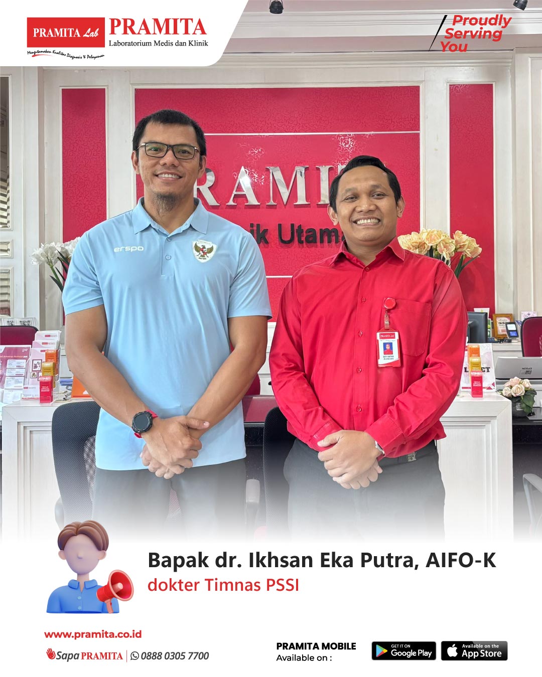 Mon, 16 Jun 2025Terimakasih kepada dr. Ikhsan Eka Putra, AIFO-K (ikhsan_eka_putra) - dokter Timnas PSSI atas kepercayaannya, telah melakukan pemeriksaan Medical Check Up di Klinik Utama PRAMITA Cabang Pekanbaru. Salam sehat dan sukses selalu.