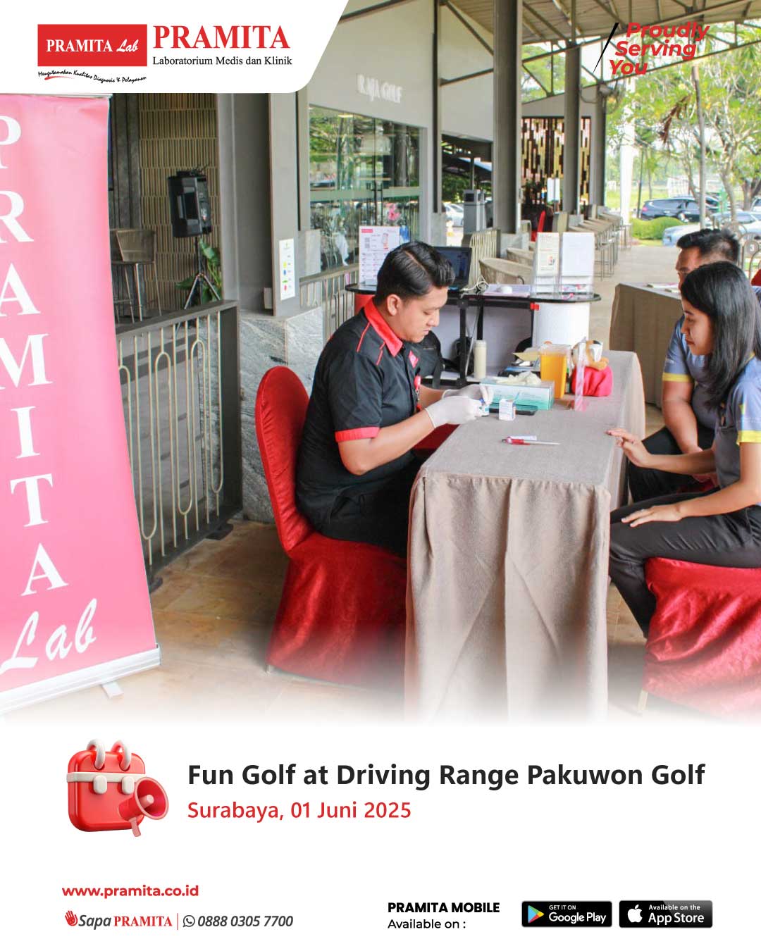 Sat, 14 Jun 2025Dalam upaya memperkuat hubungan yang lebih luas, PRAMITA Cabang Surabaya membuka layanan pemeriksaan laboratorium bagi komunitas Golf di Driving Range Pakuwon Golf. Ratusan anggota mendapatkan layanan free pemeriksaan gula darah sewaktu, ukur tekanan darah, dan pemeriksaan lainnya. Antusias anggota melakukan pemeriksaan mencerminkan meningkatnya kesadaran masyarakat akan pentingnya deteksi dini dan pola hidup sehat. Kegiatan ini juga memperkuat citra PRAMITA sebagai mitra kesehatan terpercaya ya...