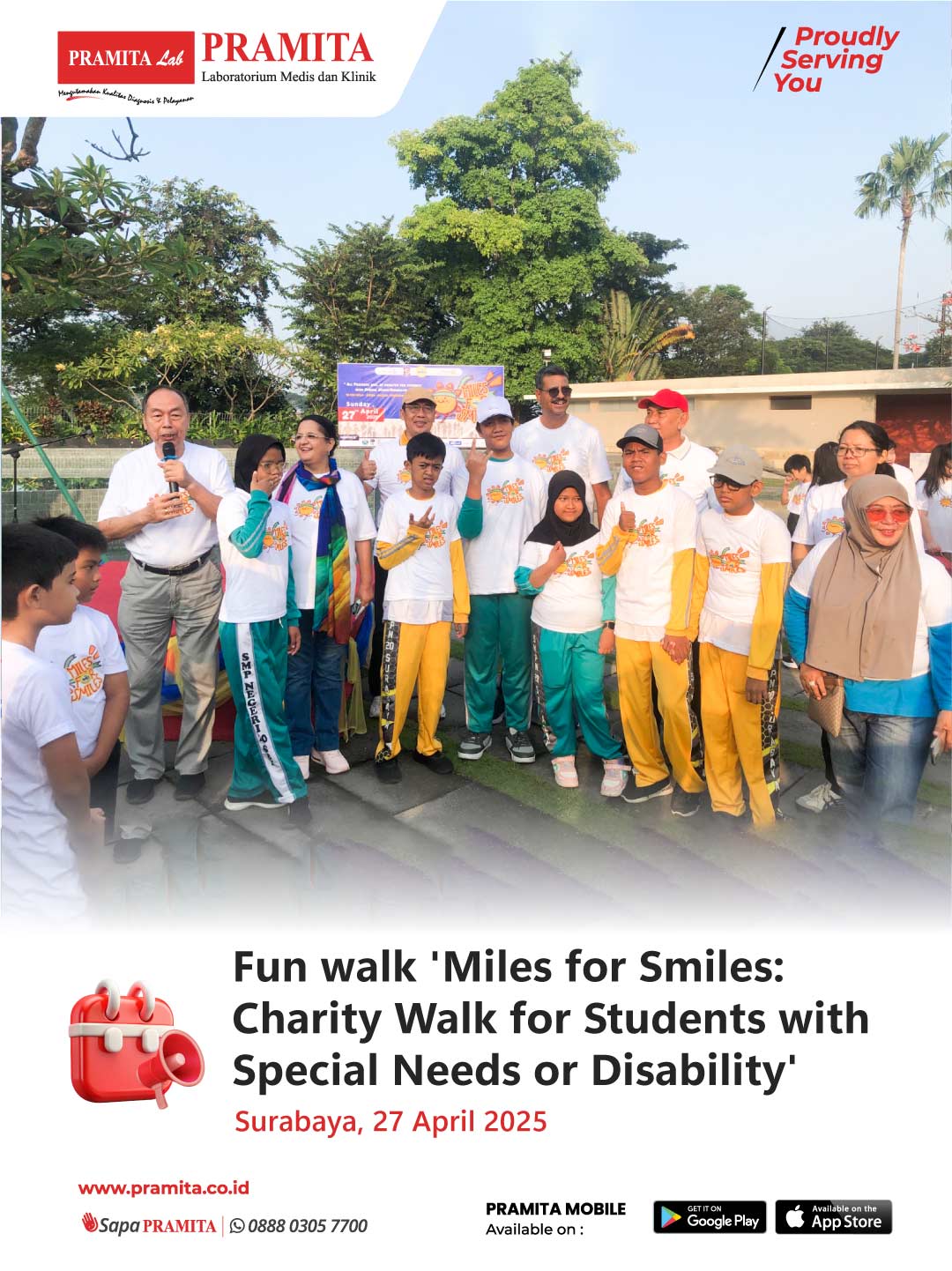 Sat, 3 May 2025Pada tanggal 27 April 2025, PRAMITA Surabaya berkontribusi dalam acara Fun Walk yang diselenggarakan oleh SPINS International School bertema “Miles for Smiles: Charity Walk for Students with Special Needs or Disability” di Club House Royal Residence, Surabaya. Acara ini dihadiri oleh lebih dari 500 peserta dan bertujuan untuk meningkatkan kesadaran masyarakat akan pentingnya pendidikan inklusif bagi siswa berkebutuhan khusus dan disabilitas. Sebagai bagian dari kegiatan tersebut, PRAMITA memb...