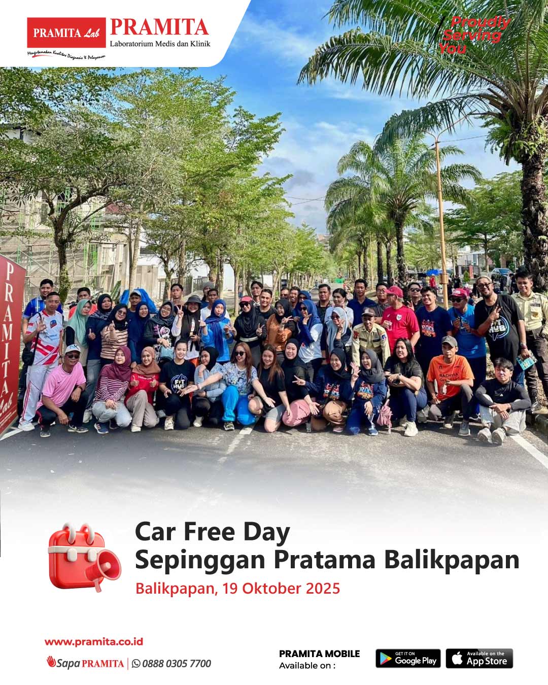 Sat, 1 Nov 2025Car Free Day Sepinggan Pratama Balikpapan Tanggal 19 Oktober 2025 – PRAMITA Cabang Balikpapan turut berpartisipasi dalam kegiatan Car Free Day Sepinggan Pratama yang digelar bersama Fithub dan Rachmad Group Land di Sport Center Sepinggan Pratama. Kegiatan ini dihadiri oleh karyawan Rachmad Group Land serta masyarakat sekitar yang antusias mengikuti rangkaian acara. Sebagai bentuk dukungan terhadap gaya hidup sehat, PRAMITA Balikpapan membuka layanan skrining kesehatan meliputi pemeriksaan...