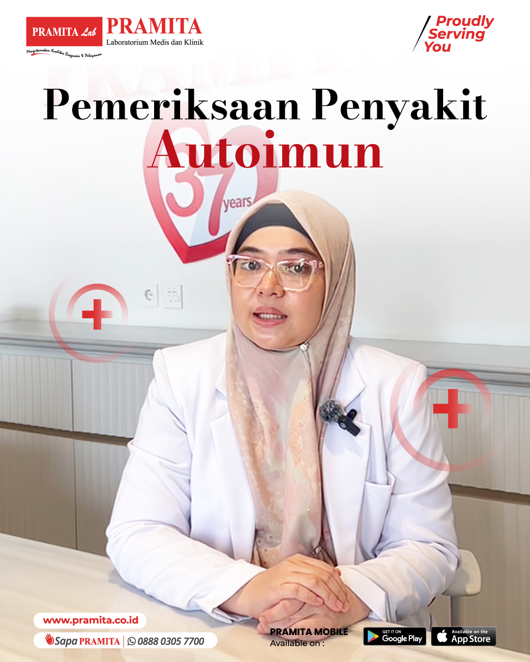 Wed, 30 Apr 2025Penyakit autoimun memiliki gejala luas dan sering sulit dikenali, sehingga diperlukan pemeriksaan komprehensif. Mulai dari anamnesis, pemeriksaan fisik, hingga tes laboratorium seperti darah lengkap, urinalisis, fungsi ginjal, marker inflamasi, serta tes autoantibodi (ANA, Anti-dsDNA). Pemeriksaan menyeluruh ini penting untuk diagnosis yang tepat dan pemantauan perjalanan penyakit. Dengan deteksi dini dan terapi yang sesuai, kualitas hidup pasien autoimun dapat meningkat. Untuk informasi lebih l...