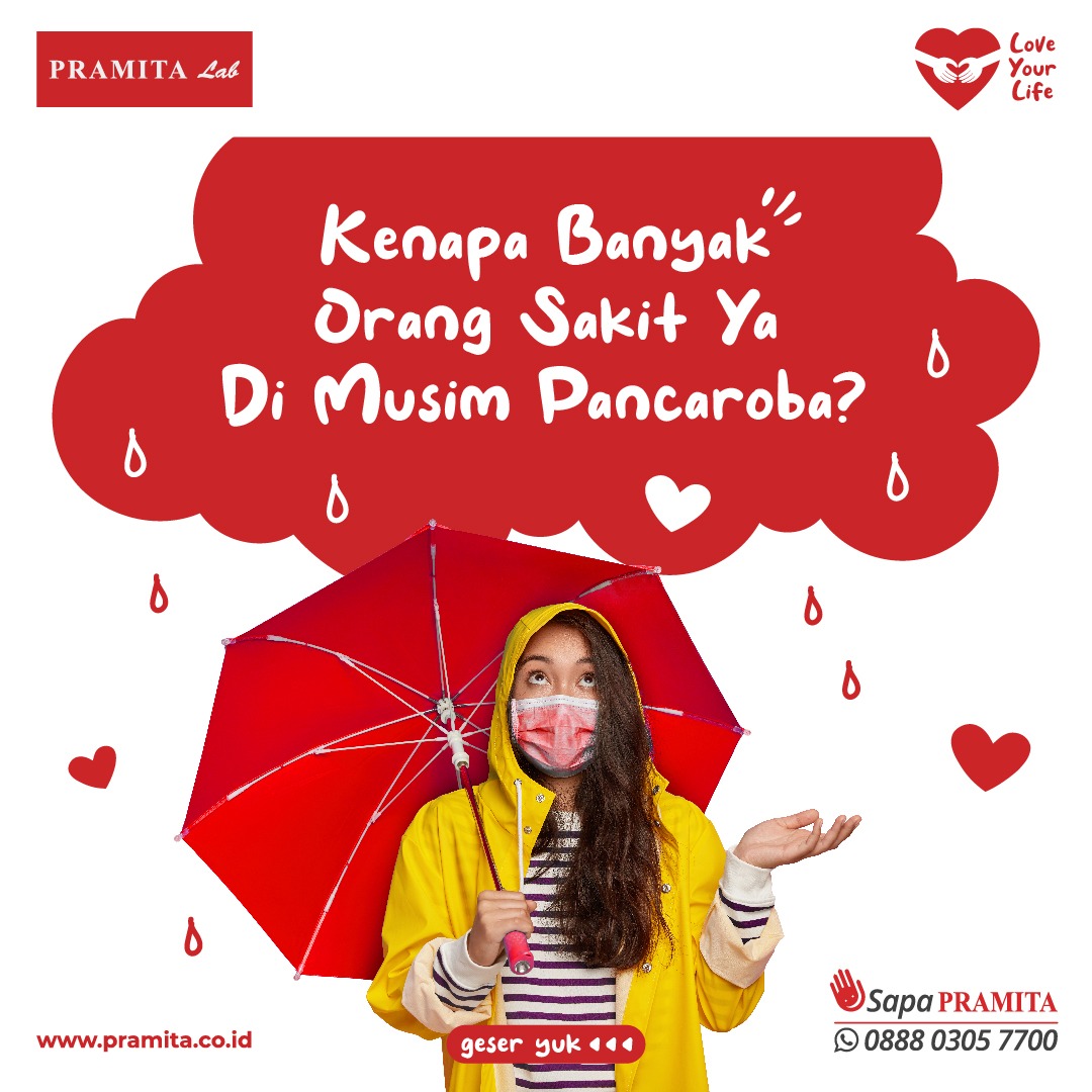 Sat, 17 Sep 2022Pernahkah #sahabatpramita bertanya-tanya, kenapa kita lebih mudah jatuh sakit di saat musim pancaroba? Ternyata ada alasannya, lho. Suhu udara yang lebih dingin membuat produksi imunitas tubuh berkurang. Selain itu, udara yang lembab juga membuat bakteri dan virus berkembang lebih cepat. Kondisi cuaca yang nggak tentu di musim pancaroba dapat berpontesi munculnya penyakit lho, karena: Pada musim pancaroba (terutama dari kemarau ke musim hujan), orang cenderung lebih sering berada atau b...