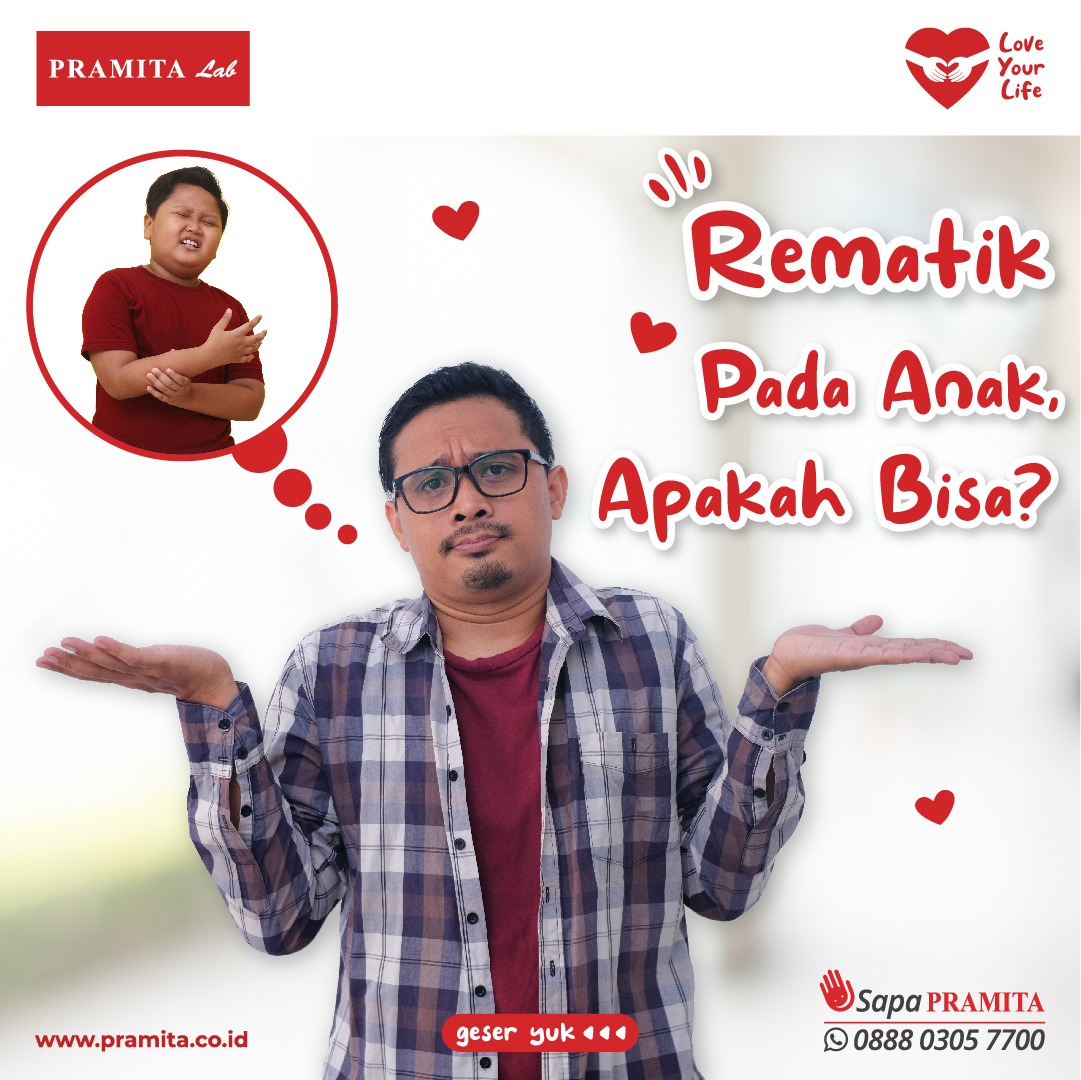 Wed, 7 Sep 2022Tak hanya pada orang dewasa, anak-anak ternyata juga bisa terkena rematik. Gejala, tanda-tanda, atau ciri-ciri rheumatoid arthritis yang umum terjadi pada orang dewasa, seperti nyeri, kaku, dan bengkak pada sendi, serta kelelahan, demam, dan kehilangan nafsu makan, juga bisa dialami oleh anak-anak yang mengalami rematik. Penyakit ini disebut juga dengan juvenile idiopathic arthritis atau juvenile rheumatoid arthritis (JRA).Penyebab dari penyakit rematik pada anak hingga saat ini belum diketahui...